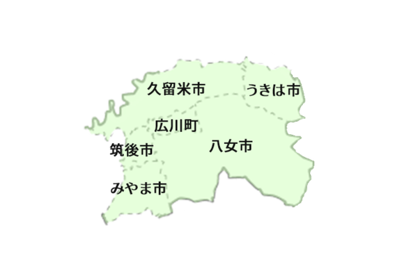 久留米市・うきは市・八女市・広川町・筑後市・みやま市・日田市
